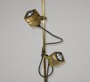 Lampadaire à double spots orientables, coulissant sur une fine tige de métal doré.